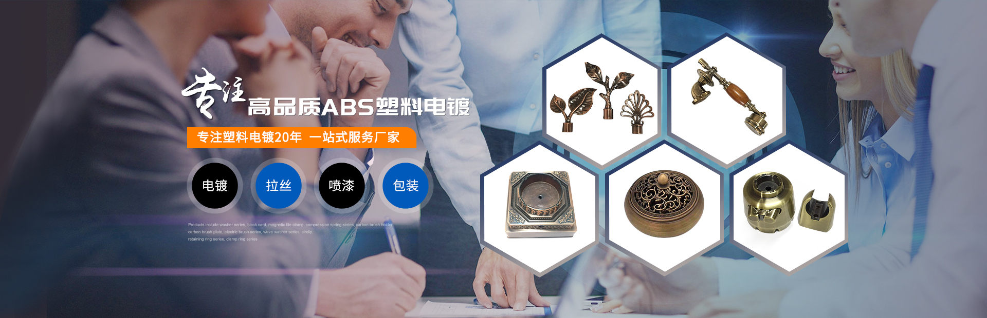 本廠專門從事高中檔[ABS]塑料電鍍,現擁有二條全自動塑料電鍍流水線,二條自動烘干烘道,以及前處理車間、拉絲車間、噴漆車間、包裝車間等多個配套車間??蓮腻兦疤幚怼㈦婂?、拉絲、噴漆、包裝、成品出庫、送貨上門、物流托運,為每位客戶提供一站式便捷服務.....